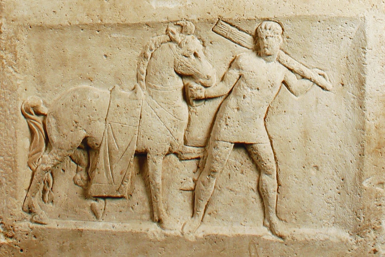 Foto: Clemens Sels Museum Neuss, Firstziegel mit einer tragischen Theatermaske, gefunden im Neusser Legionslager, 1. Jh. n. Chr.