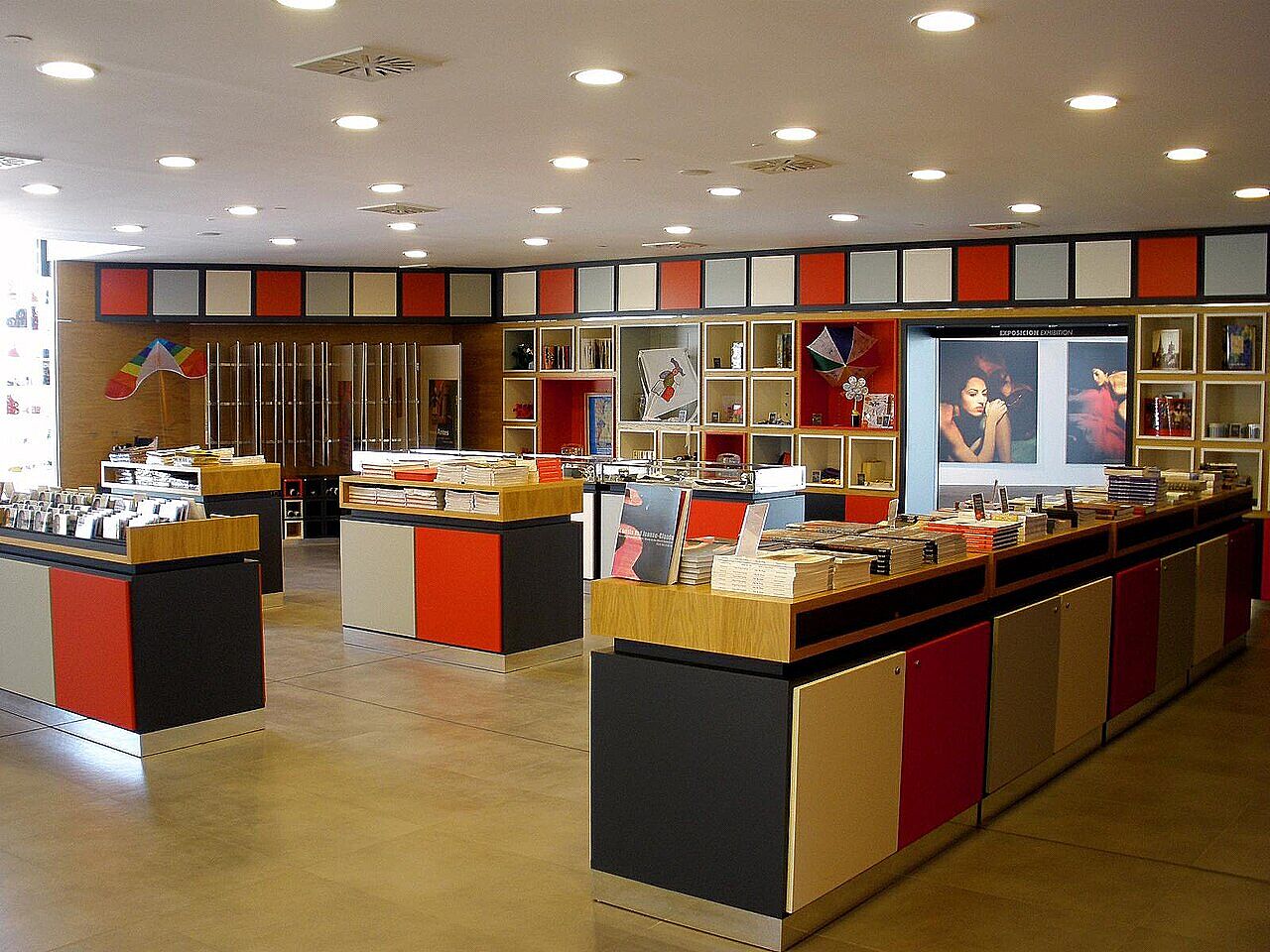 Foto: Museumsshop, der Ausstellungskataloge verkauft, Tienda del Museo Würth La Rioja, en Agoncillo (La Rioja, España), Zarateman, CC0